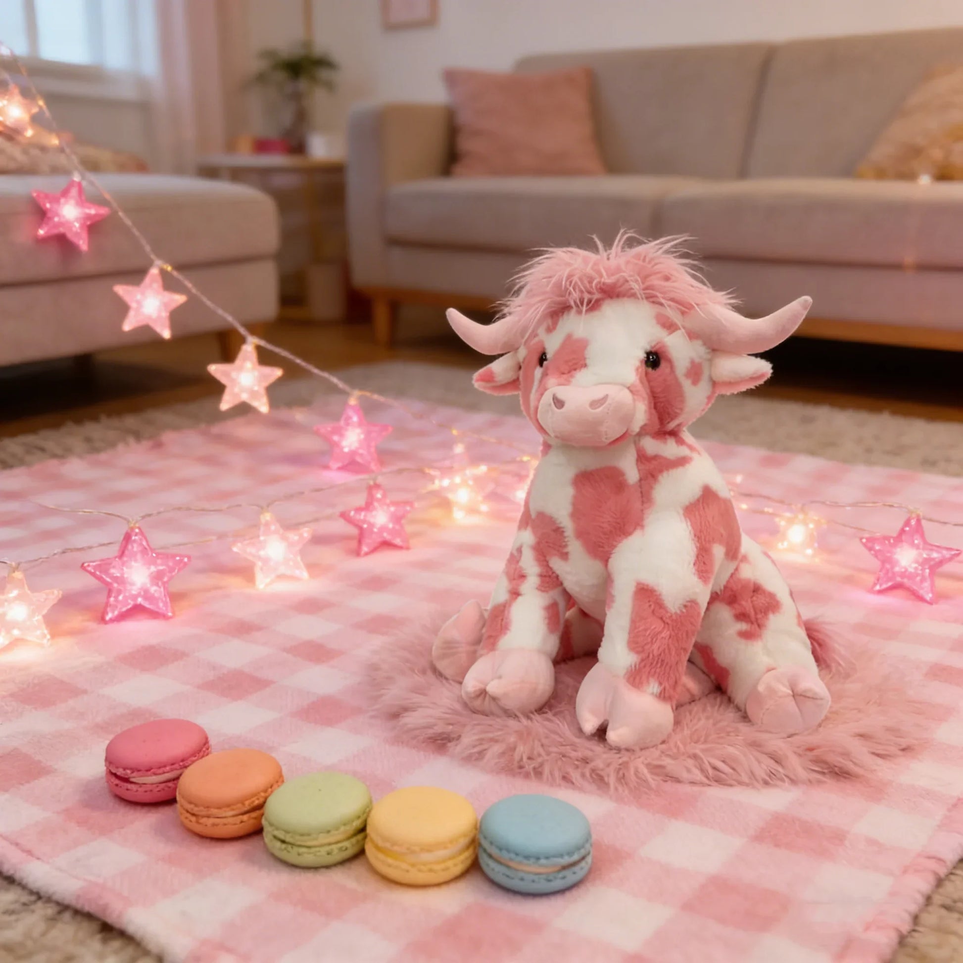 š§ø Meticulously crafted with premium fluffy plush, it has a delicate and soft touch that feels incredibly healing when held. The lovely design recreates the classic Highland cow look, paired with a playful pink hue, plus gentle embroidered eyes and iconic fluffy hornsāevery detail exudes unique charm.